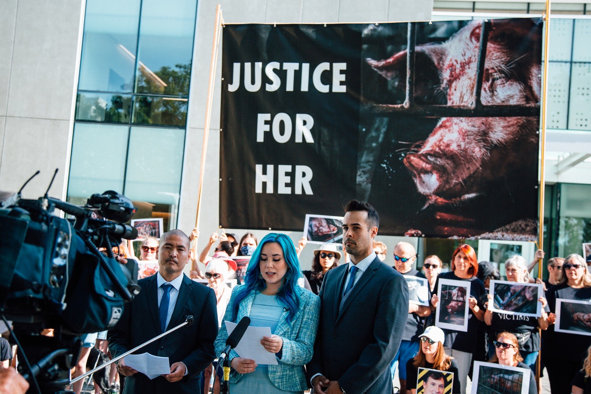Following the ‘Meat the Victims’ action, Amy Soranno was charged with 7 indictable offences. Unlike summary offences, indictable offences are at the highest criminal level in Canadian courts. Amy had originally been scheduled to appear in court alone in August 2019, but her case was postponed while an extensive investigation took place.